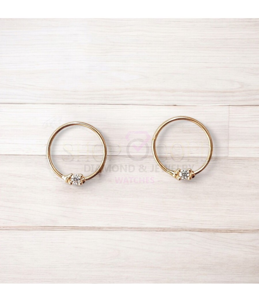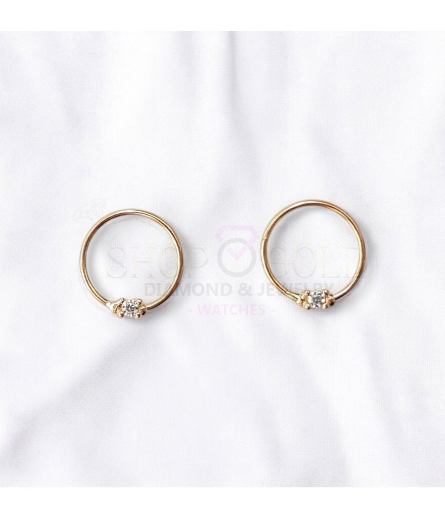 חישוק חלק מעוטר בשיבוץ זרקון לאף/הליקס בזהב 14K
