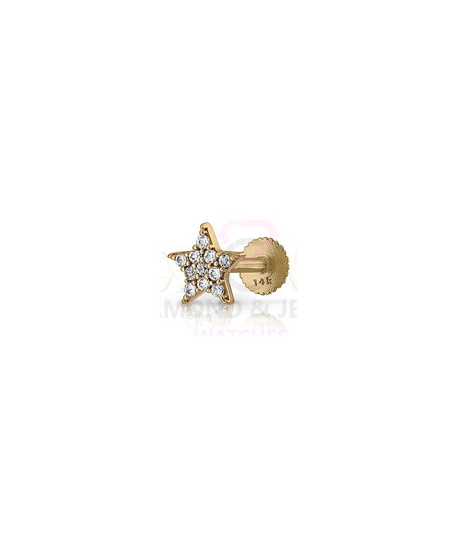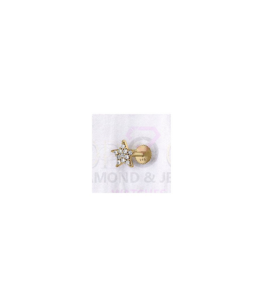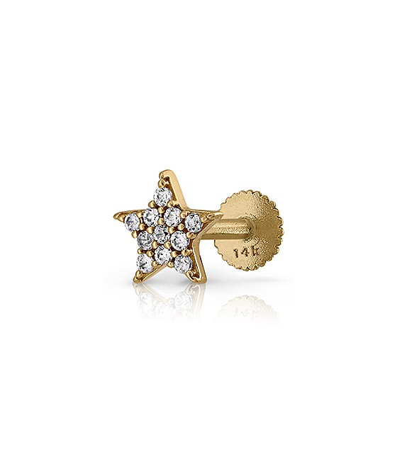 עגיל הליקס/טרגוס בודד עם הברגה דוגמאת כוכב משובץ זהב 14K
