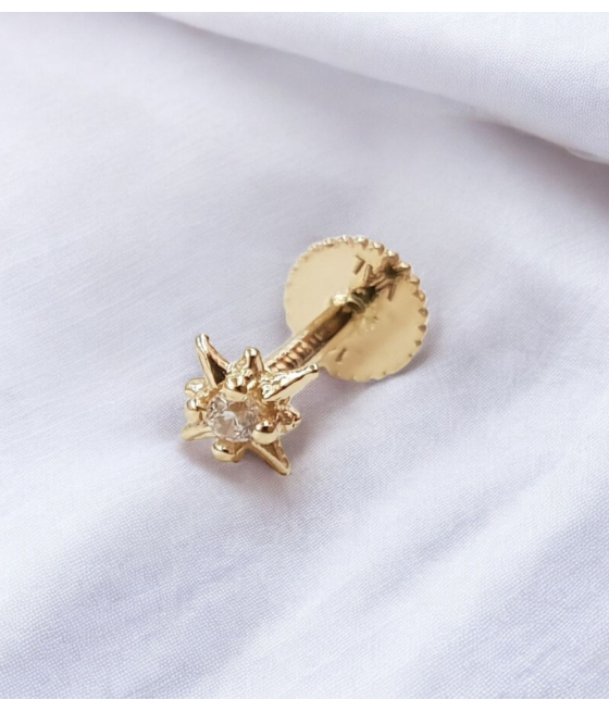 עגיל הליקס/טרגוס בודד עם הברגה דוגמאת כוכב הצפון משובץ זהב 14K