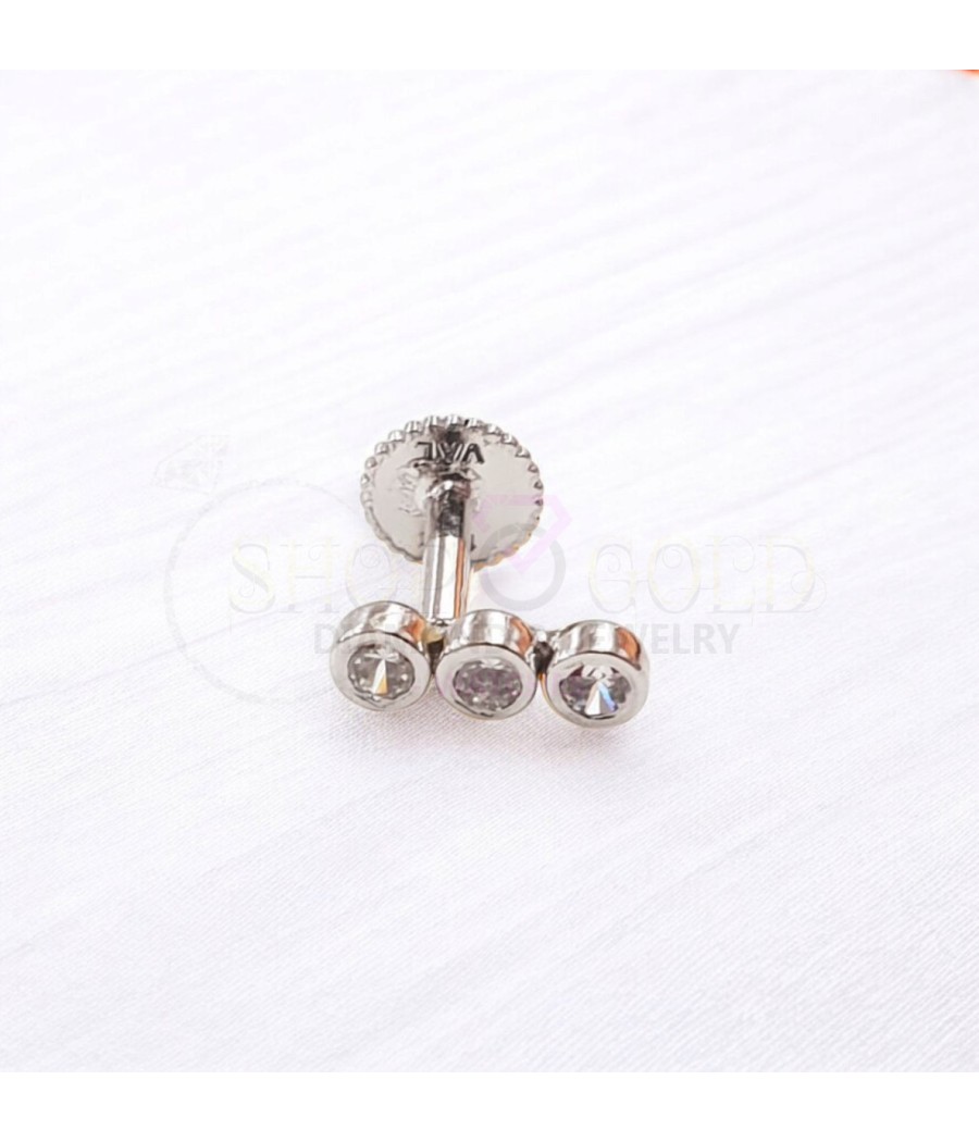 עגיל הליקס/טרגוס בודד עם הברגה דוגמאת שלוש אבנים משובצים זהב 14K